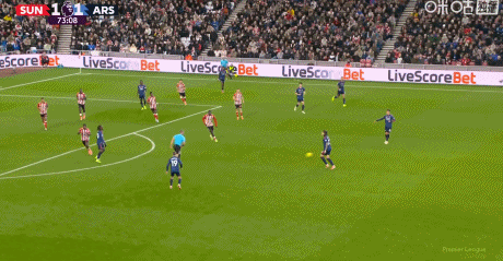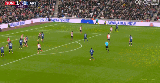 第53分钟,苏比门迪做球,萨卡跟进打门偏出