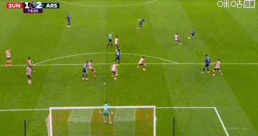 第15分钟,加布里埃尔造定位球,赖斯操刀兜射被扑