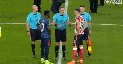 第34分钟,扎卡被判犯规,随后欲找倒地的梅里诺理论